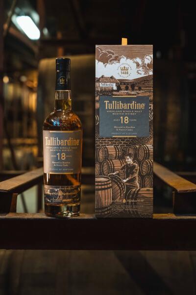 Tullibardine 18 éves whisky első töltésű bourbon- és sherryhordók kombinációjában érlelődött.
